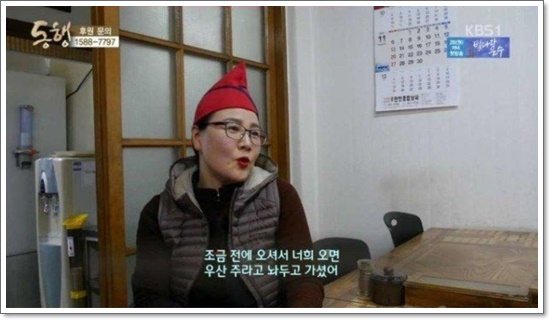 하지만 이번에도 역시 아이들이 자신으로 인해 놀림을 받을까봐 학교 근처에 우산을 맡겨두고 갑니다.