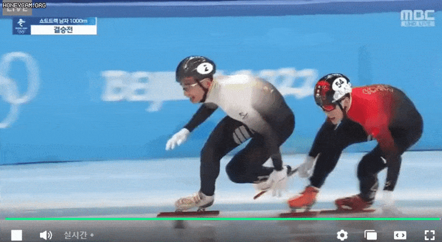 이제는 쇼트트랙에서 아이템까지 사용을 해 반칙을 하니... 카트라이더 게임을 방불케 합니다.