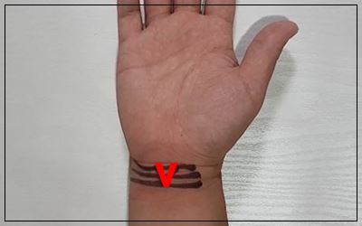 손목선에 V자 무늬가 있다면 이는 가장 길한 손목선 손금입니다. 손목에 서너줄의 손목선이 흐트러지지 않고 곧게 뻗어있고, V자 무늬가 선면한 사람은 말년에 예상치 못란 큰 재물을 얻는 사람입니다. 또한 가치가 큰 부동산을 갖게 될 것을 의미하는 길상중에 길상입니다.