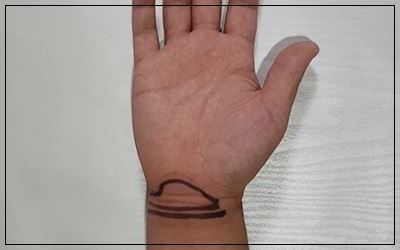여러줄의 손목선이 있는 중에 가장 위의 손목선이 크게 휘어진 분들이 종종 있습니다. 이런분들 역시 끊어진 손목선처럼 건강이 좋지 못한 사람입니다. 내장기관이 약하고, 생식기 장애가 일어나기 쉬운 사람인데요.