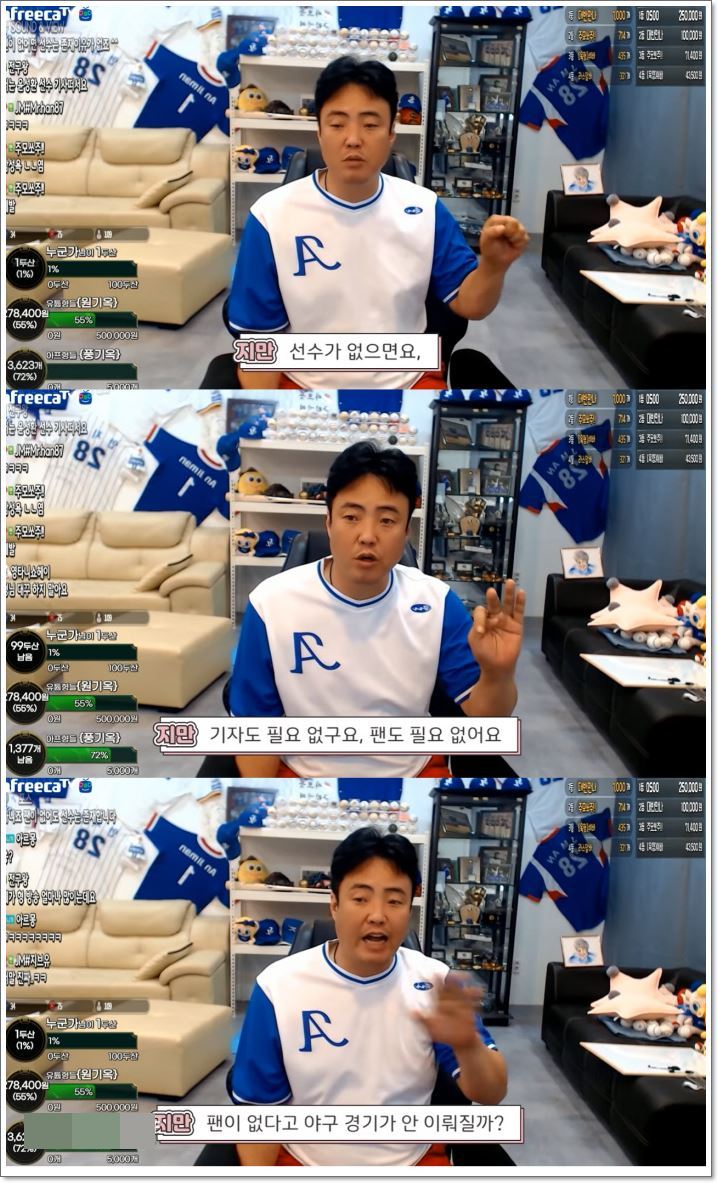 전 삼성라이온즈 투수였던 안 선수는 본인의 유튜브 채널에서 팬이 없다고 야구 경기가 안이뤄질까? 라고 말을 했습니다. "선수가 없으면 기자도 필요없고, 팬도 필요없다." 는 안 선수의 말...
