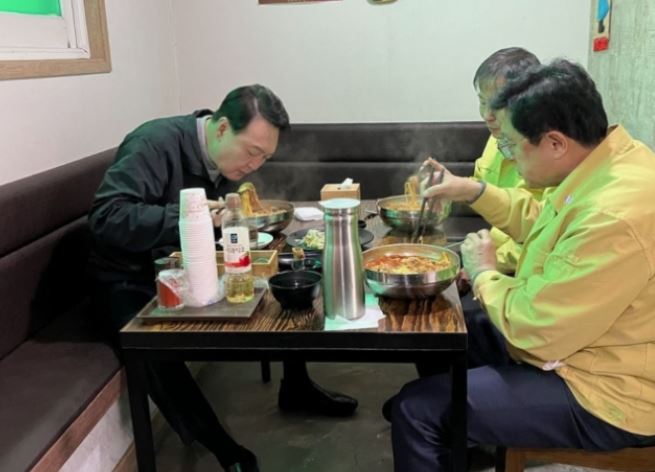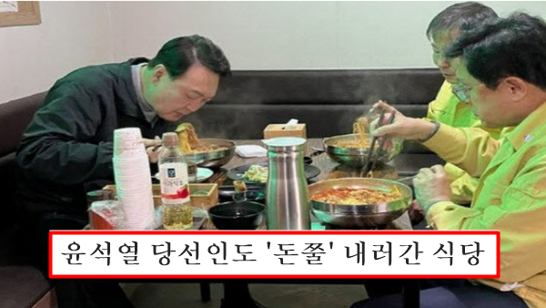 윤석열 당선인도 지난달 15일 경북 울진군에 들러 산불 피해 주민을 위로한 뒤 일행과 함께 울진읍 시내에 있는 '청목신신 짬뽕'에 들러 돈쭐을 내주셨는데요.  김은혜 당선인 대변인은 "윤 당선인이 이 식당 매출을 올려주고 싶다며 직접 식사 장소를 골랐다"고 방문 이유를 설명했습니다.