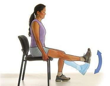 의자에 바르게 앉아 한쪽 다리를 곧게 펴면서 발끝은 몸 쪽으로 당기고 30초 장도 자세를 유지한 후 천천히 내려줍니다.
