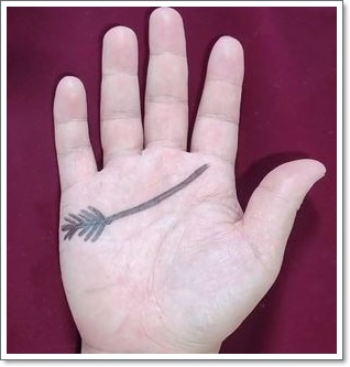 다음으로 감정선을 봅니다. 감정선 시작 지점에 화살 깃처럼 양쪽으로 지선이 많이 있는 손금은 많은 자식을 본다는 것을 나타냅니다. 이 손금은 왕성한 정력과 생식기능을 의미합니다. 그래서 자식 복이 있음을 나타내는 손금입니다. 남녀를 불문하고 이 지선이 전혀 없는 사람은 자녀가 귀한 상으로 봅니다.