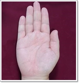 손가락이 시작하는 기저선이 다른 손가락에 비해 유난히 아래로 처진 분들이 종종 있습니다. 이러한 경우에는 눈으로 봤을 때 새끼손가락이 짧아 보이지만 수상학에서는 짧은 것으로 보지 않습니다. 그래서 자식복이 없다고 보지 않습니다.