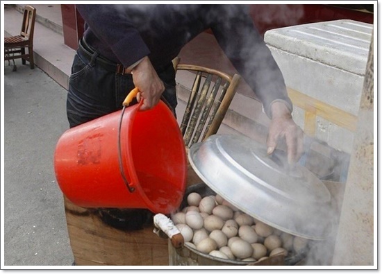 계란을 삶을 때는 대략 하루정도 푹 삶아내는데, 이때 중간중간에 오줌을 리필해서 부어주어야 깨진 계란의 틈 사이로 오줌이 잘 배여 든다고 합니다.