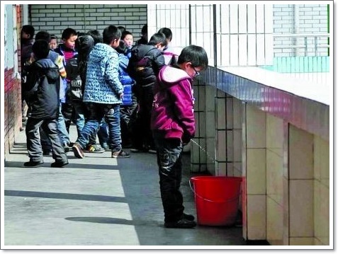 중국의 저장성 둥양시에는 진풍경이 펼쳐집니다. 멀쩡한 화장실 대신 학생들이 교식 밖의 플라스틱 소변을 모으는 통에 소변을 보는 것인데요.