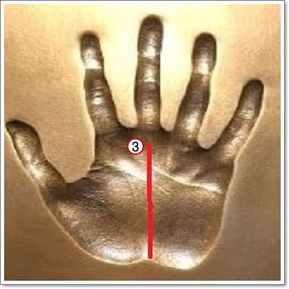 이곳에서 시작하는 운명선을 가진 사람은 자수성가형인 사람입니다. 젊을 때부터 혈혈단신으로 묵묵히 자신의 운명을 개척하며 살아가는 사람으로 "개천에서 용 난다"라는 말이 딱 맞는 사람입니다. 무명시절 많이 힘들었지만 묵묵히 최선을 다해 본인의 노력을 통해 자수성가한 임영웅의 손에도 역시나 길고 선명한 한 줄의 운명선이 있음을 알 수 있습니다.