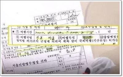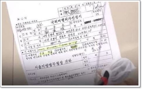 이것은 이미 병역기피자로 1996년 9월 30일에 서울 행정법원에서스티브 유는 병역기피자'다 법원 판단이 있었습니다. 그리고 또 하나는 제가 여기 가지고 왔습니다만 해외 출국을 할 때 국외 여행 허가 신청서가 있어요.