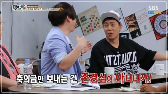 그래서 그는 자신과 싱크로율이 똑같은 어머니를 유재석의 결혼식에 대신 참석을 하게 했습니다. 축의금만 보내는 것은 그에 대한 존경심이 아니라 생각했기 때문인데요.