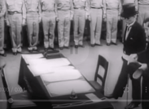 한쪽 다리를 잃은 시게미쓰는 훗날 일본의 외무대신이 됐는데요. 1945년 9월 2일 미국의 미주리 함상에서 항복문서에 서명하는 역할을 맡은 인물이기도 합니다. 항복 문서에 서명을 하러 등장할 때 한쪽 다리를 절뚝이며 무게 10kg의 의족에 의존했는데, 이 상처를 준 것이 윤봉길 의사의 폭탄 파편이었습니다.