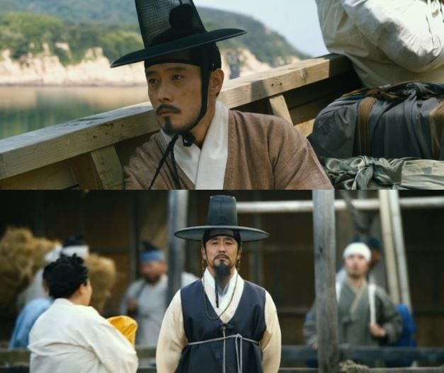 배가 출발하고 저 멀리 도승지 허균이 미소 지으며 인사를 하면서 가짜 왕을 떠나보냅니다.
