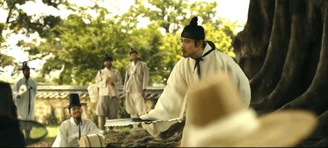 광해가 의식을 잃고 사경을 헤매는 동안 도승지 허균은 하선을 불러 광해군의 대역을 하게 합니다. 왕의 역할을 끝내고 궁궐을 빠져나와 도망을 칩니다.