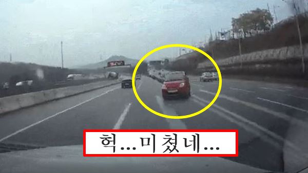 우측편 차선의 빨간색 마티즈가 보일겁니다. 차선을 변경하는 듯 하다가 어느 순간 갑자기 회전을 하네요...