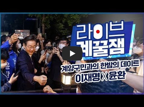 지난 11일 이재명 후보가 운영하는 유튜브 채널 이재명에 "이재명x윤환 계양구민과 한밤의 데이트!"라는 영상이 올라왔습니다. 이후보는 이날 밤부터 2시간이 넘게 인천 계산동 일대를 돌았는데요. 계양구청장 후보로 확정된 윤환 계양구의회장도 이 후보자와 함께하였습니다.