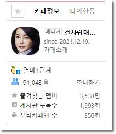 조만간 10만명이 넘어가며 점점 커질 것으로 예상이 되는 건사랑 카페.