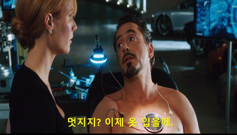 영화 아이언맨을 재미있게 각색한 자막입니다. 감자탕 참신하네요. 더 다양한 자막을 보겠습니다.