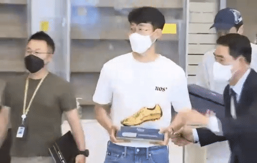 손흥민은 입국장 출구 앞에 인산인해를 이룬 팬들과 취재진에게 프리미어리그 득점왕 트로피 ‘골든 부트’를 들고 사진 촬영에 응한 뒤 허리를 숙여 인사한 후 공항 밖으로 빠져나갔습니다.