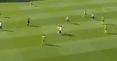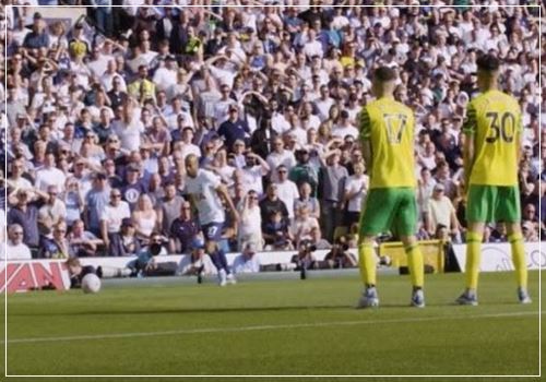 이후 노리치시티 수비들이 모우라의 프리킥을 막지 못했고, 공중볼을 이어받은 손흥민이 '손흥민 존'에서 전매특허 감아 차기로 통렬하게 골망을 갈라 23호 골을 득점한 손흥민.