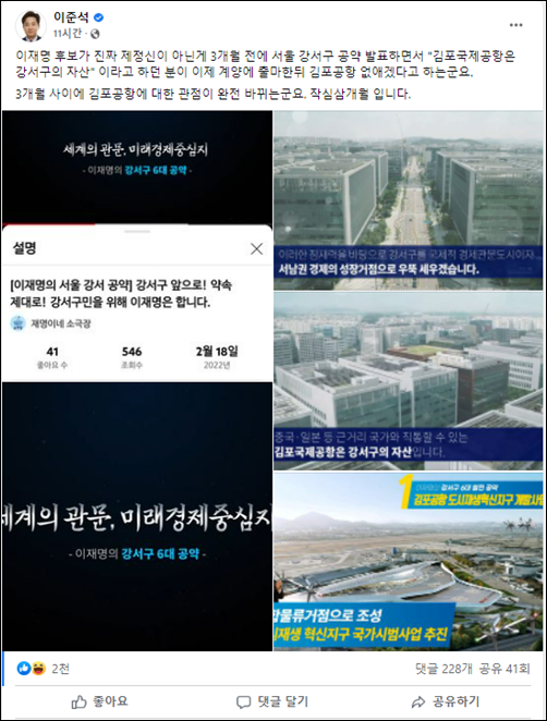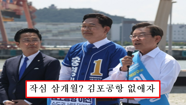 라며 얼마 전까지는 김포공항을 강서구의 자산이라 했던 이재명 후보가 이제 와서 없애겠다고 하는 것을 두고 작심삼개월이라며 비판했습니다.