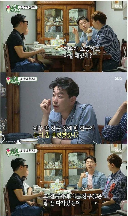 이동우와 데뷔 시절부터 절친으로 알려진 김경식은 “과거 지우 반에 눈이 불편한 친구가 있었다”며 “그 친구를 아무도 도와주지 않을 때 지우는 ‘우리 아빠도 눈이 불편하다’면서 가장 열심히 도왔다”라고 설명했습니다. 참 마음씨 착한 아이인데요.