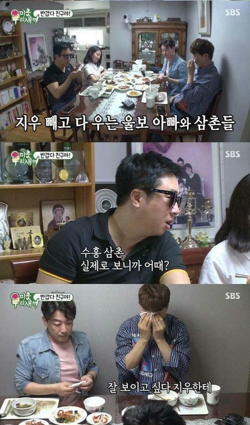 지우의 말에 아빠와 삼촌들은 눈물바다를 이룹니다. 정말 울보 아빠에 울보 삼촌들입니다.