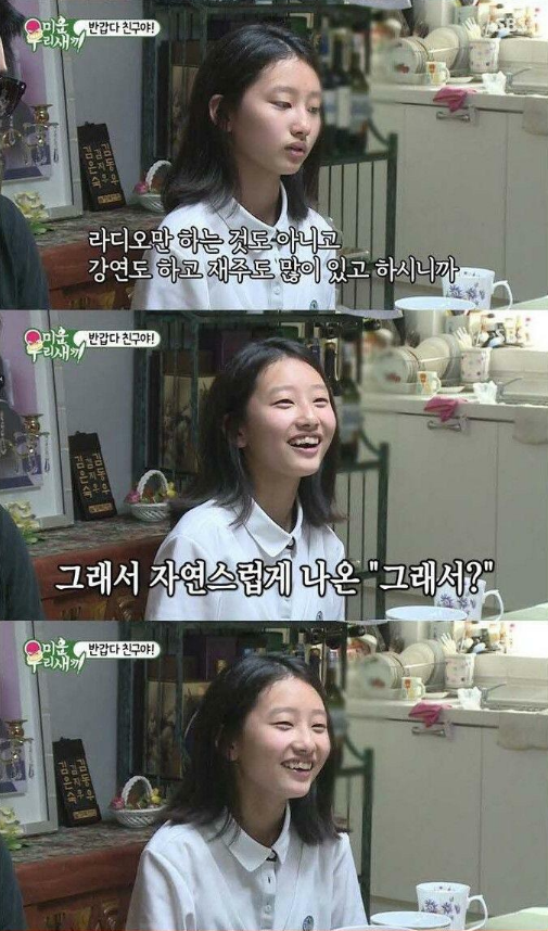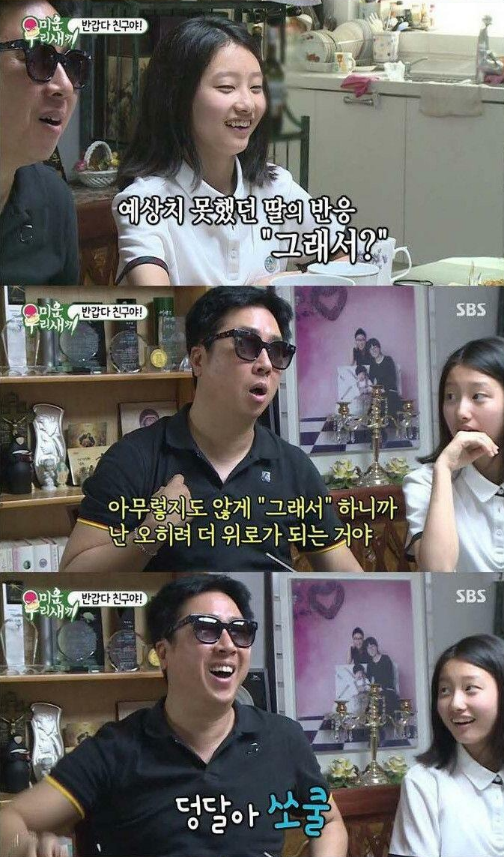 아빠의 말을 들은 지우는 ‘그래서?’라 말했는데요. 지우 양은 “아빠가 직업을 잃어버린 것도 아니고, 라디오만 하던 것도 아니다. 강연도 하고 재주도 많은 사람”인데 그게 무슨 문제냐며 아빠에게 말한것 입니다.