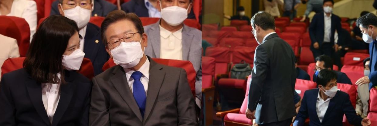 문제는 이 부분에 대해 몇몇 언론보도에서 민주당 상황실을 중계하는 방송화면에서 이재명 위원장의 침통한 표정이 나오자 이를 본 이준석 대표가이재명 표정을 보라며 웃었다는 기사가 나왔는데요.