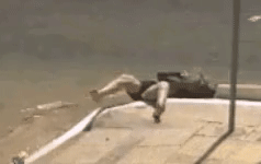충격으로 오토바이에서 튕겨져 나간 여성은 몇바퀴 구른 후 하수구로 머리부터 빠지며 사라집니다.