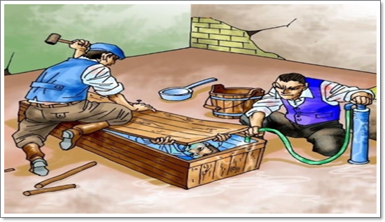- 사람이 간신히 들어갈 수 있는 나무 상자에 긴 대못을 박아놓고 3일간 가둬놓기