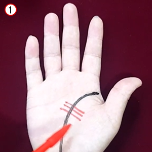 생명선 안쪽에서 시작해 손바닥 중간으로 여러 줄의 가늘고 짧은 스트레스선이 있는 사람은 정신적 스트레스가 조금 있는 사람입니다. 마음에 여유를 갖는다면 금방 해소가 될 스트레스입니다.