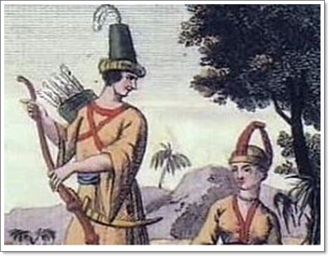 최초로 서양인이 조선인의 모습을 그린 그림입니다. 1806년 프랑스에서 만든 '아시아 왕국의 민족들' 이라는 책에 그려진 그림입니다. 딱 봐도 옷이 인디언 쪽에 가깝고, 외모는 서양인과 비슷한 거의 상상도 수준이라 할 수 있습니다. 그래도 하나 특이한 점은 손에 인삼을 들고 있다는 점입니다 이당시에도 조선에 인삼이 많다고 소문이 나있었다고 합니다.