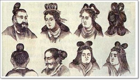 위 그림은 1882년 조선 시대의 머리 모양을 그린 그림이라고 하는데, 조선인 보다는 중국인의 머리 모양에 가깝게 그려진 그림입니다.