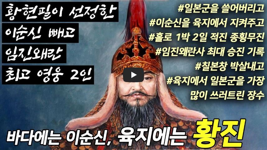 그가 쌓은 무용에 비해 인지도가 낮아서 개인적으로는 매우 가슴아프게 생각하는 분이기도 합니다. 인지도는 낮지만 결코 그 공은 낮지 않았던 황진장군에 대해 자세히 알아보겠습니다.
