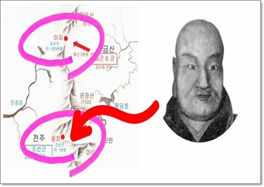 이때 웅치고개는 조선 관군과 의병 1000명이 지키고 있었습니다.