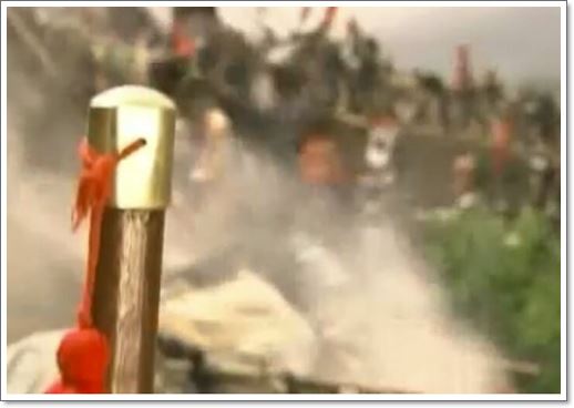 왜군이 총을 쏘며 달려들자, 황진은 부하 장수인 공시억 등과 함게 고지에서 맞서 싸웠습니다. 그의 다른 부하 장수인 위대기는 복병으로 일본군을 급습했습니다. 피비린내나는 혈투가 계속 이어졌습니다.