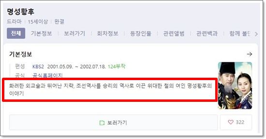 2001년 KBS에서 방영된 명성황후. 화려한 외교술과 뛰어난 지략, 조선역사를 승리의 역사로 이끈 위대한 철의 여인 명성황후의 이야기를 다루었다고 소개가 되고 있습니다.