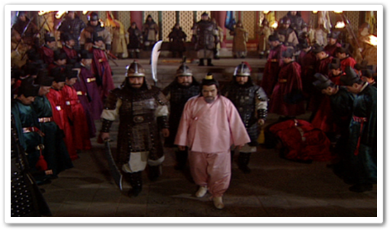 견룡군의 이의방과 이고가 왕의 지시라고 속여 호위하는 순검들을 물러나게 했습니다. 이후 견룡군을 동원해 한뢰, 임종식, 이복기, 이세통 등 왕을 수행하던 문신과 환관들을 사정없이 죽였습니다.