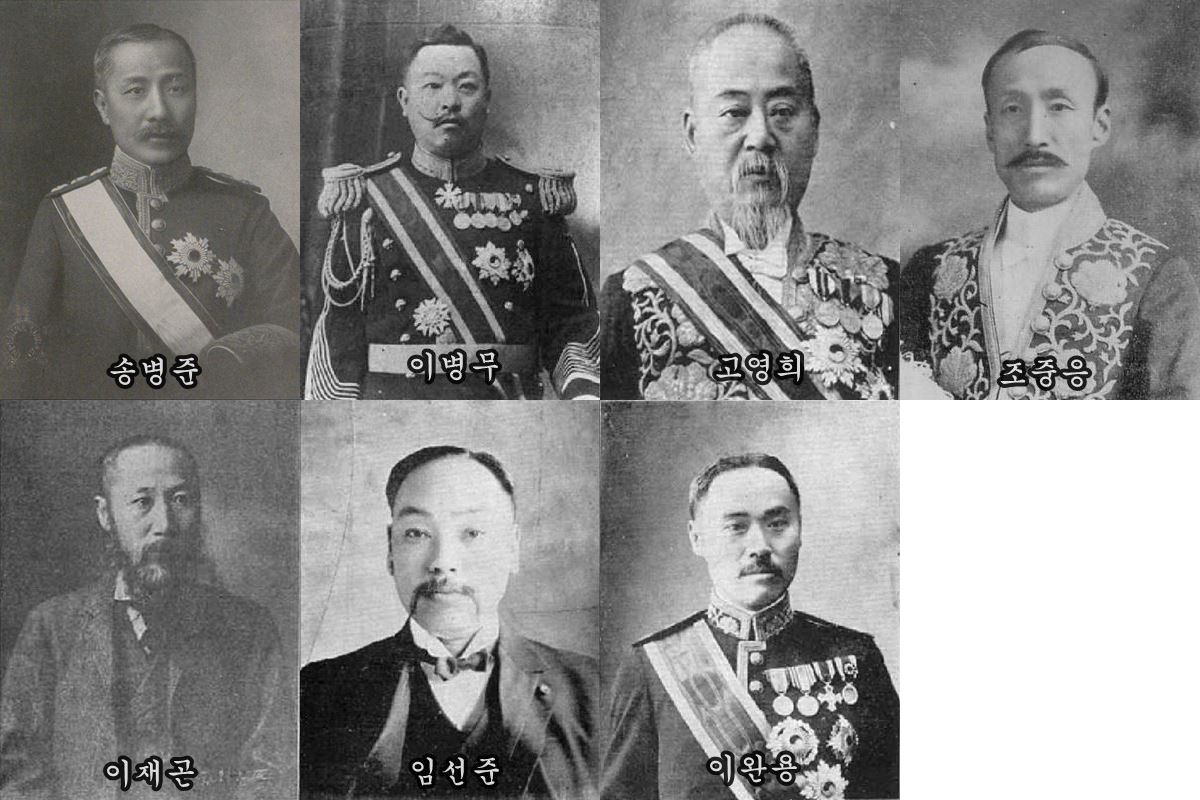 을사늑약 체결 2년 후인 1907년 7월에 체결된 한일신협약(정미7조약) 조인에 찬성한 내각 대신 7인을 가리킵니다.