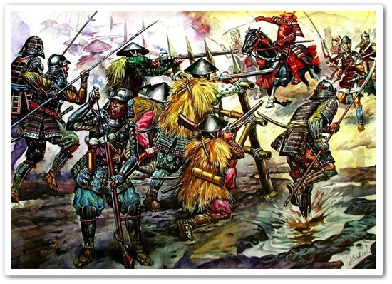 조선 조정에서는 당시 최강의 맹장이었던 신립을 파견해 왜군을 막도록 명하였습니다. 충주 탄금대에서 신립의 군대와 조우한 고니시는 유인작전을 펼쳐 신립의 기병대를 늪지대로 유인한 뒤 조총과 활로 섬멸시켰습니다.