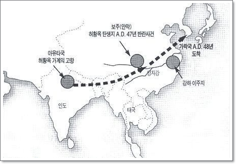 삼국유사의 가락국기에 따르면 허황옥은 지금의 인도 우타르프라데시주의 갠지스강의 지류인 고그라강 연변에 존재하였던 아유타국(阿踰陀國)의 공주였습니다.