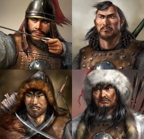 사준사구(四駿四狗)라 불리는 이들은 네 마리의 충성스런 준마와 충견을 뜻하며, 칭기즈칸이 몽골을 통일하는것을 도운 당대 최고의 문무를 겸비한 유능하고 충성스런 부하들이었습니다.