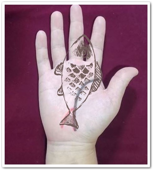인터넷 손금 검색을 하다보면 물고기 꼬리 문양이 훗날 풍족한 삶을 사는 부자 되는 손금이라고 알려져 있음을 볼 수 있습니다.