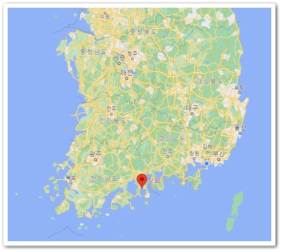 그 유배지는 전라남도 끝자락에 있는 해도로 오늘날에는 노루를 닮았다해서 이름 붙여진 장도입니다. 장도는 전라남도 여수시에 속해있는 섬입니다.