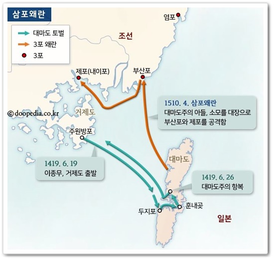 1510년 부산포, 내이포, 염포 등 삼포에서 거주하고 있던 왜인들이 대마도의 지원을 받아 삼포왜란을 일으키는 사건이 발생합니다.