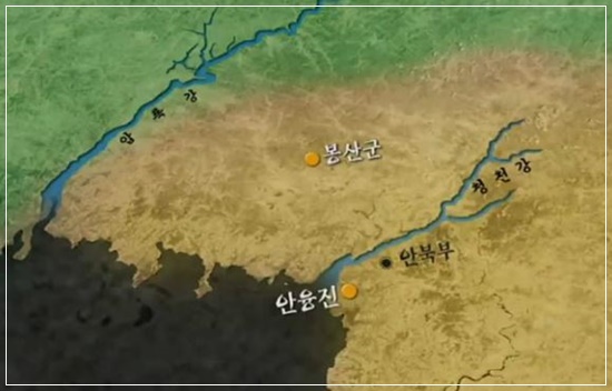 안주성과 안융진의 거리는 70리. 안주성에 총사령부를 두어 청천강을 방어선으로 삼았던 고려군으로서는 거란군에게 기습을 당한 것입니다.